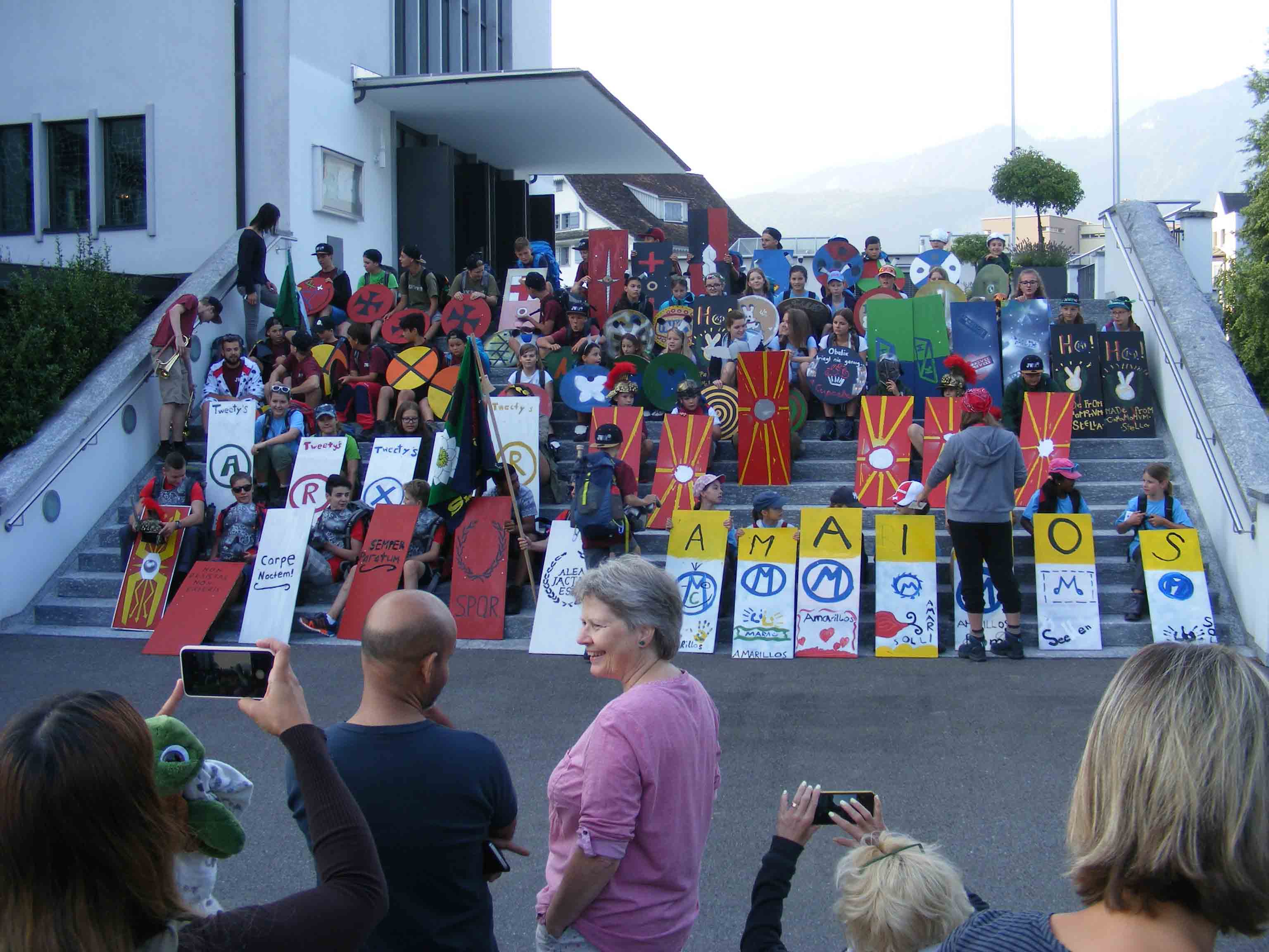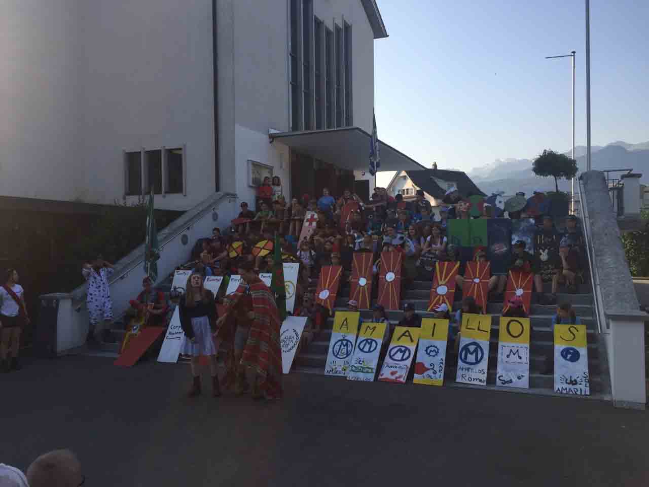 p. Am Wochenende begannen die lang ersehnten Sommerferien. Damit einher starteten landauf landab viele Sommerlager, die von allerlei Jugendorganisationen angeboten werden. Zu jenen zählen Pfadi, Jungwacht und Blauring, aber auch diverse Sportvereine. In Seewen sind es die Jungwacht und der Blauring, welche in den ersten beiden Sommerferienwochen Lagerferien anbieten. Etwas später zieht auch der EHC Seewen mit. Bereits am letzten Donnerstag hiess es ‘Kofferabgabe’ für JW und BR. In einem Camion wurde das Gepäck über die Grenze geschickt mit dem Ziel: Lagerplatz. Ein weiteres Mal haben – nach Jahren der Trennung – die beiden Seebner Jugendscharen wieder ein gemeinsames Sommerlager aufgegleist. Beide Organisationen verreisten heute Montag (9.7.2018) nach Schellenberg (FL) ins nahe Ausland. Erst aber wurde ihnen der Reisesegen erteilt. Als Lagermotto führt das Thema ‘Asterix auf dem Weg zu den Olympischen Spielen’ durch die Ferien im Ländle. Blauringpräses Nicolette Horat und Jungwachtpräses Urs Betschart begleiten die Kids einen grossen Teil der Lagerzeit. Insgesamt nehmen - inklusive Leiter – über 120 Seebnerinnen und Seebner am bevorstehenden Lagerleben teil.