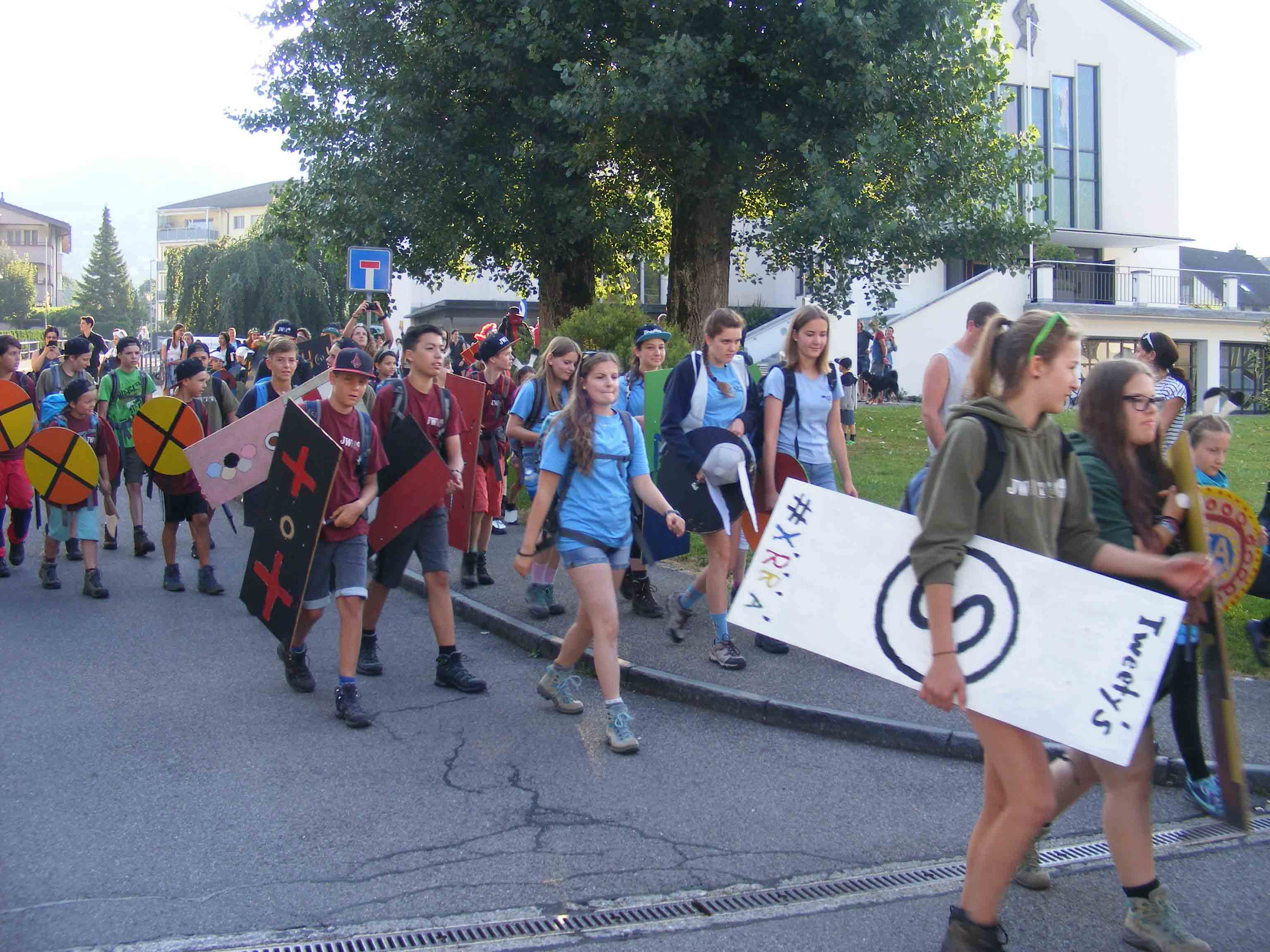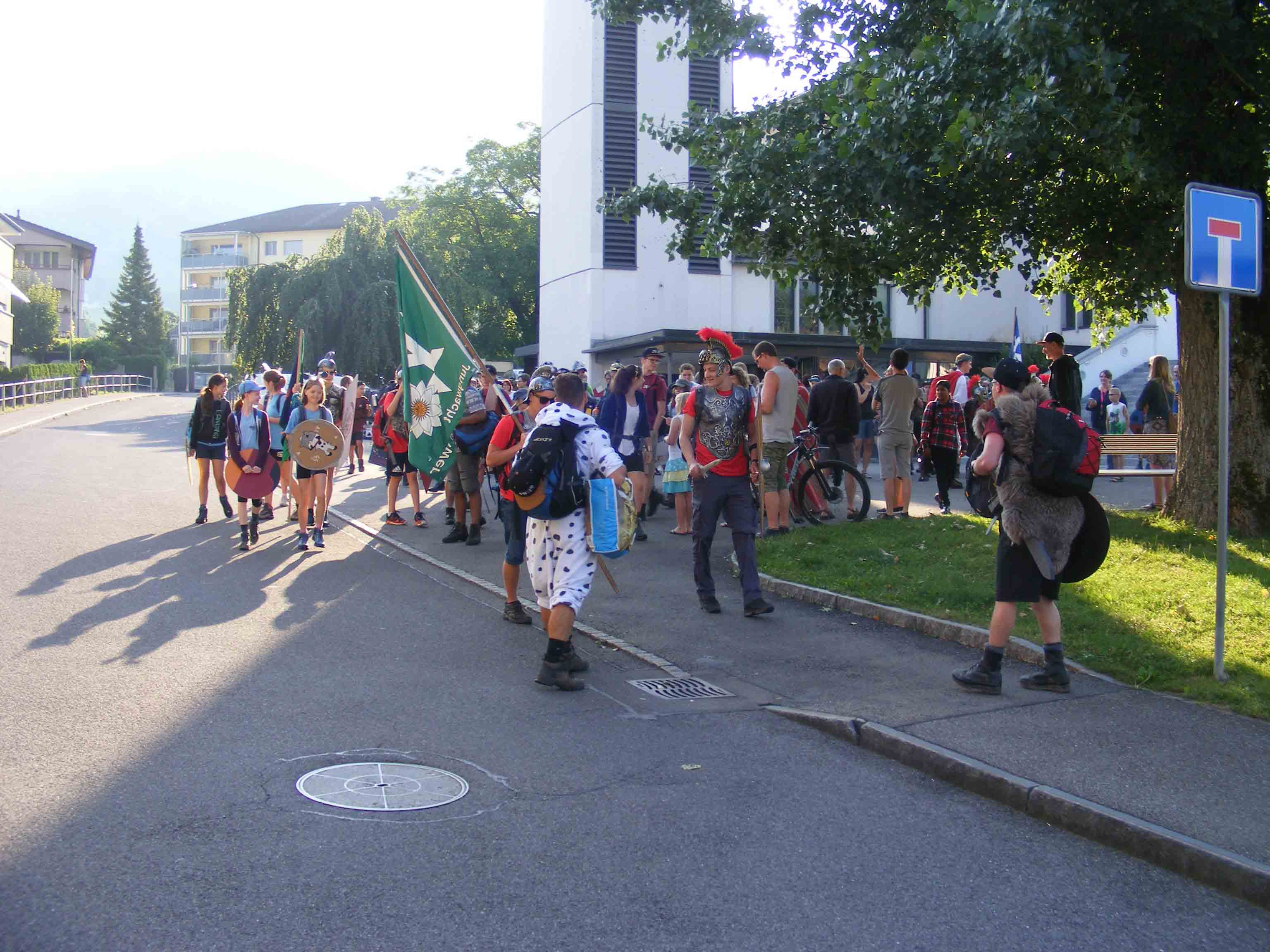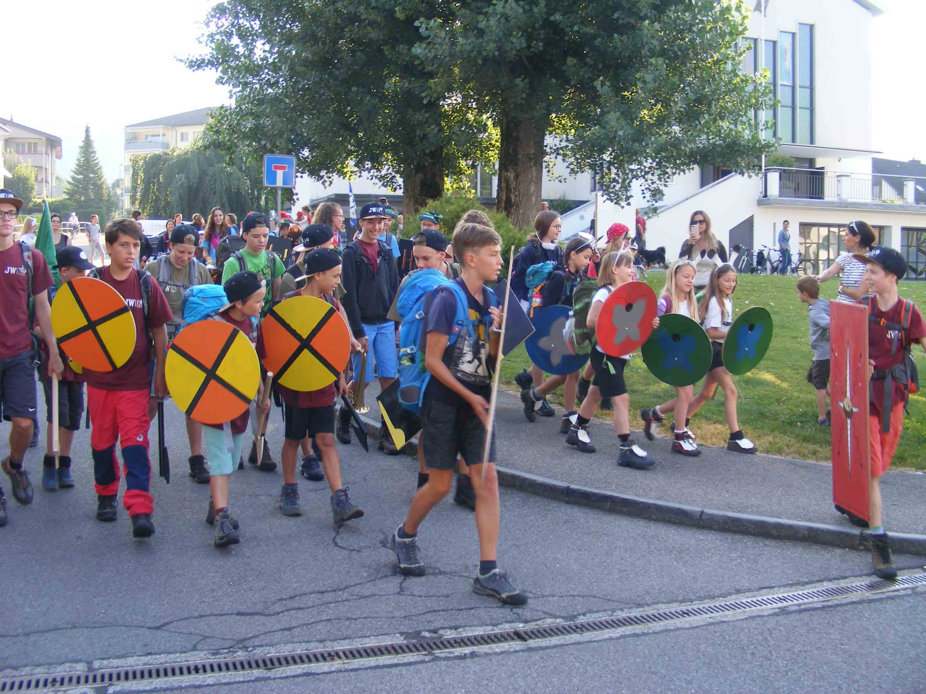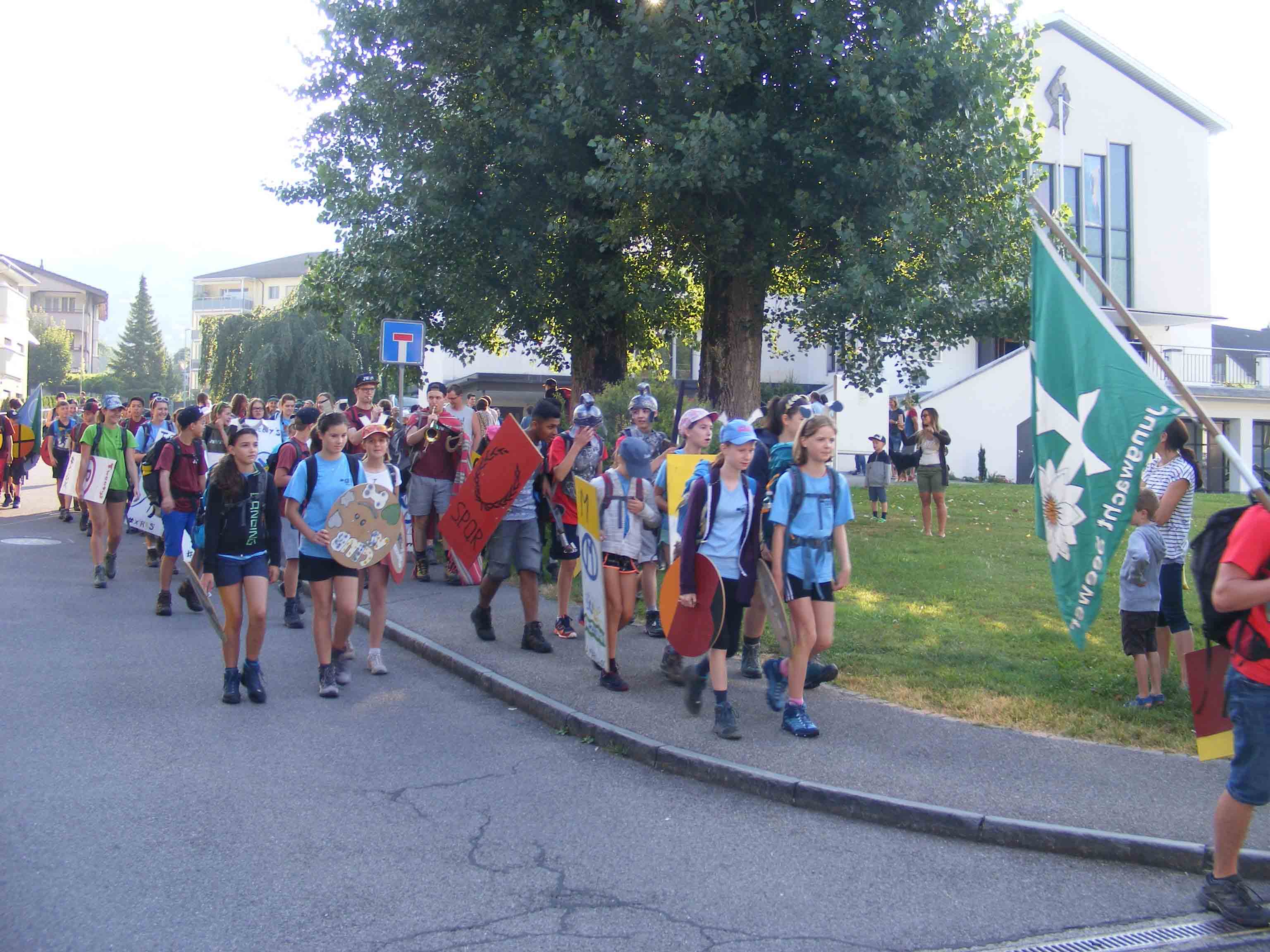Die zwei Jugendorganisationen Jungwacht und Blauring sind in ihr gemeinsames Sommerlager aufgebrochen