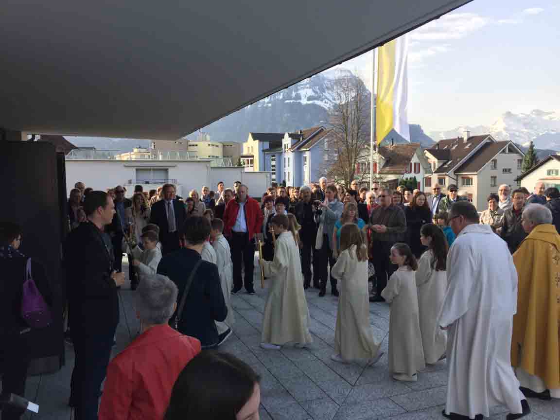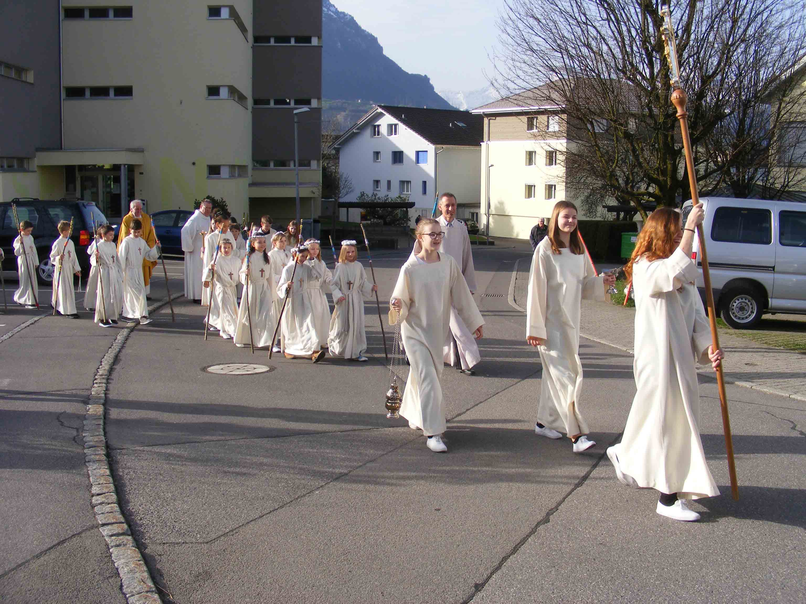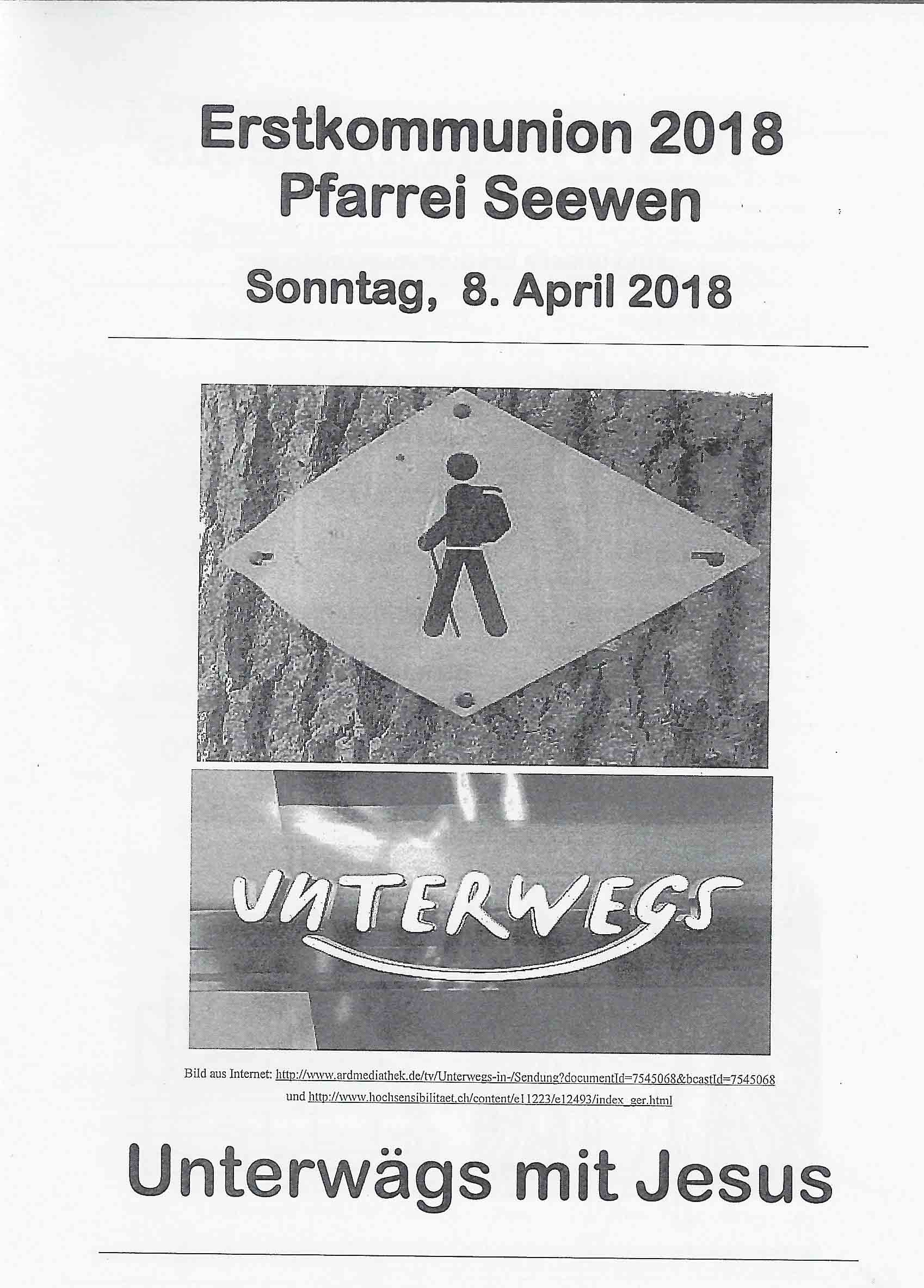 p. ‘Unterwägs mit Jesus’. So lautete das Motto der 15 Seebner Kinder, die heuer ihre Erstkommunion feierten. Wochenlang probten sie auf den grossen Moment heute Sonntag (8. April 2018), den Tag, an den sie im Rahmen eines feierlichen Gottesdienstes erstmals das heilige Sakrament der Kommunion empfangen durften. Sogar Wettergott Petrus meinte es gut mit den Erstkommunikanten. Beim Einzug des Festtrupps vom Schulhaus ‘Krummfeld’ via Alte Gasse in das Seebner Haupt-Gotteshaus herrschten eitel Sonnenschein und angenehme Temperaturen.