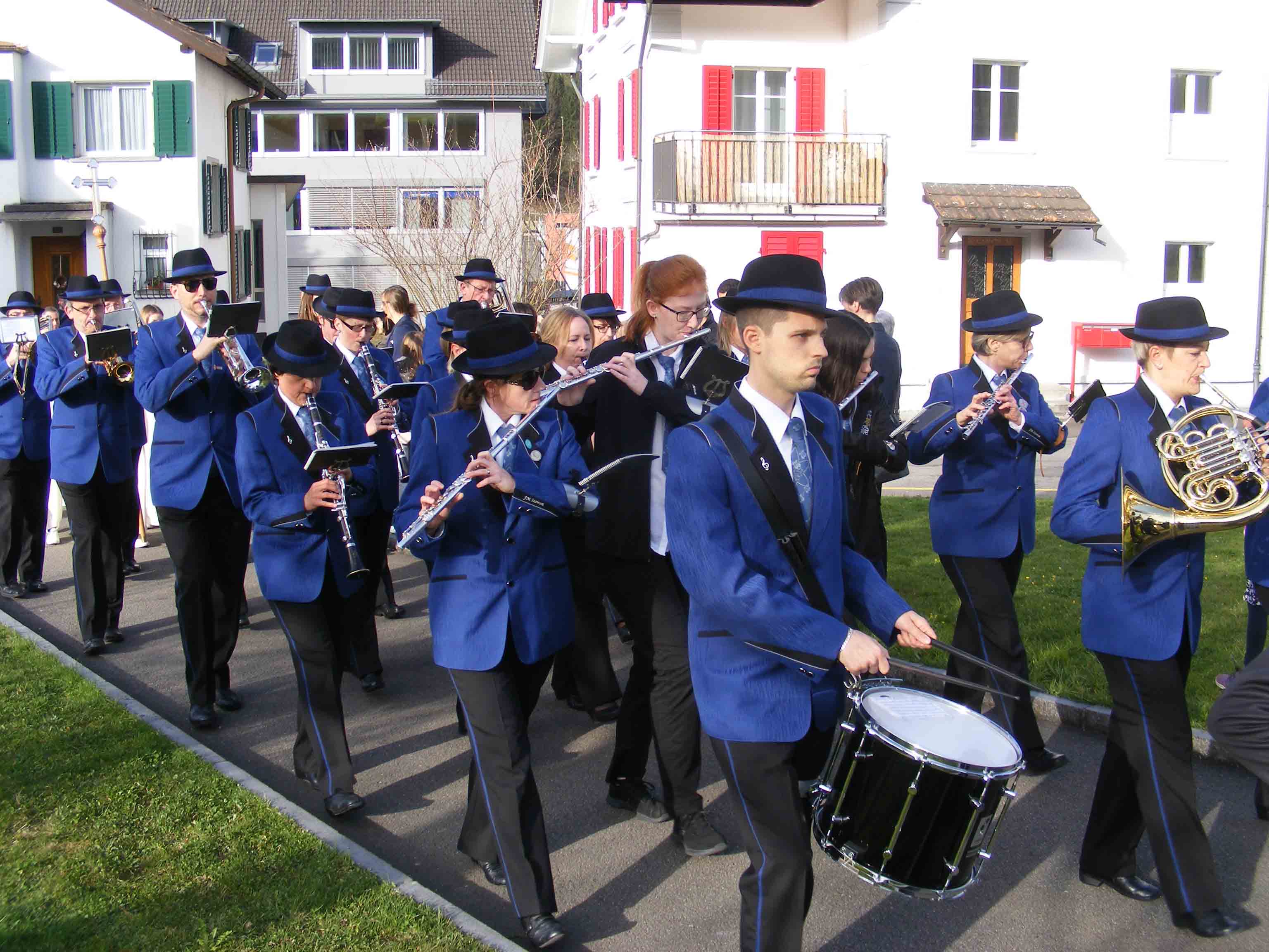 Im Anschluss an den Festgottesdienst umrahmte die Feldmusik Seewen mit musikalischen Klängen den Volksapéro, zu dem die Pfarrei Seewen die Bevölkerung einlud. Der Festtag abgerundet wurde um 17 Uhr, als sich die Festgemeinde zu einer Dankfeier nochmals in der Pfarrkirche versammelte und die Erstkommunikanten ihr Erinnerungsgeschenkli in die Hände gedrückt bekamen.
