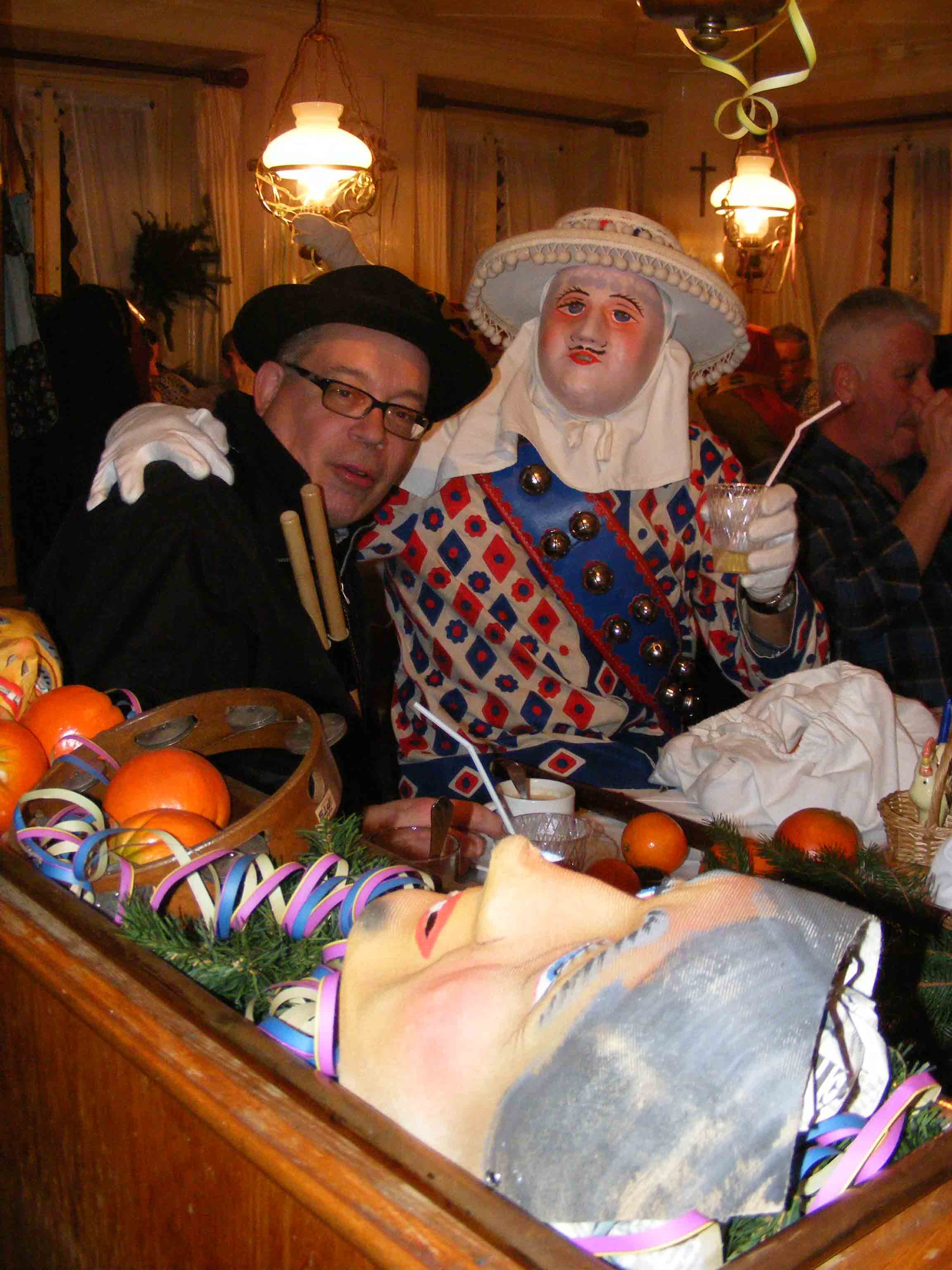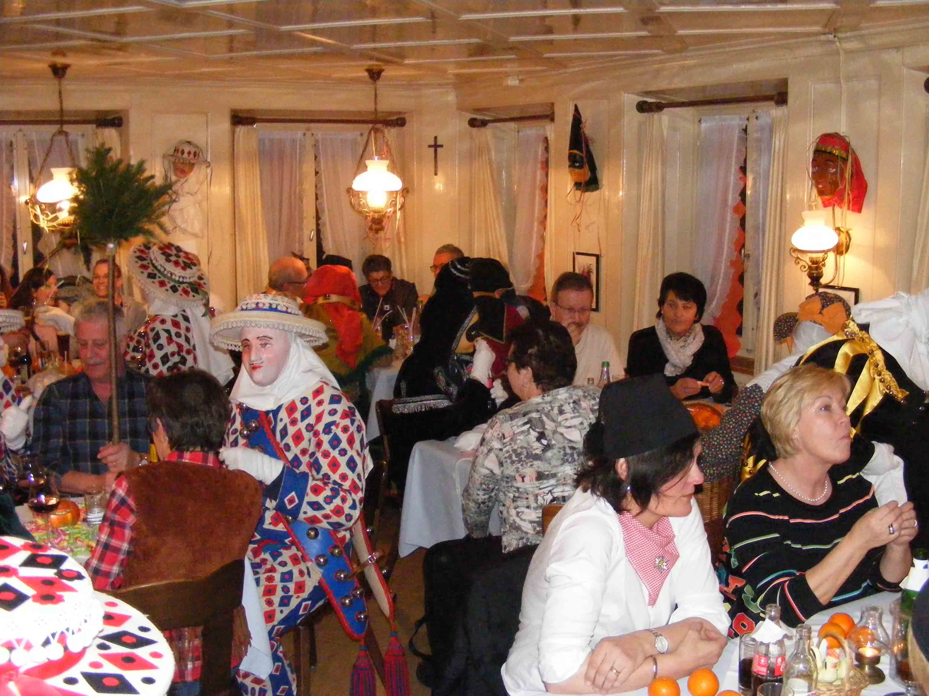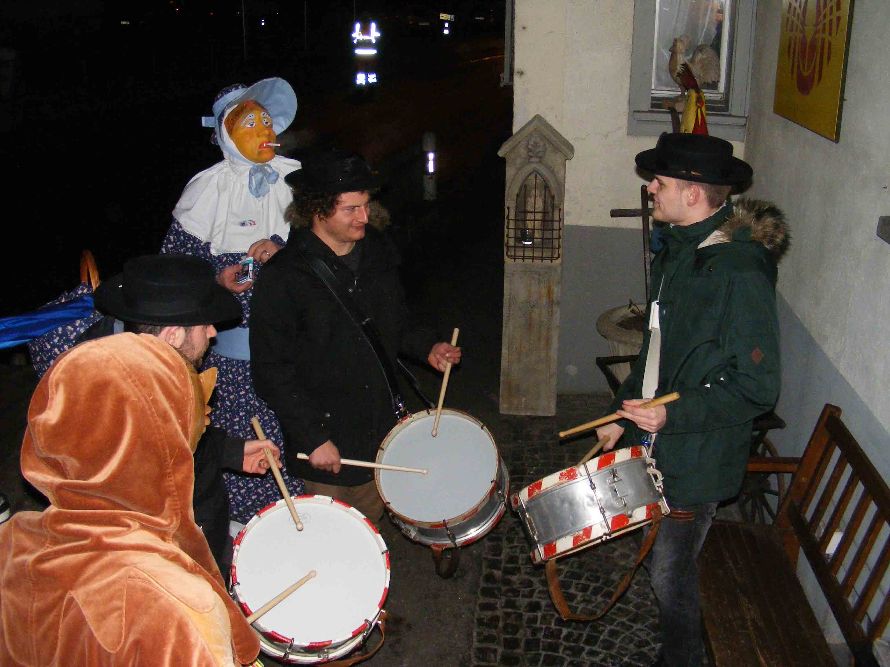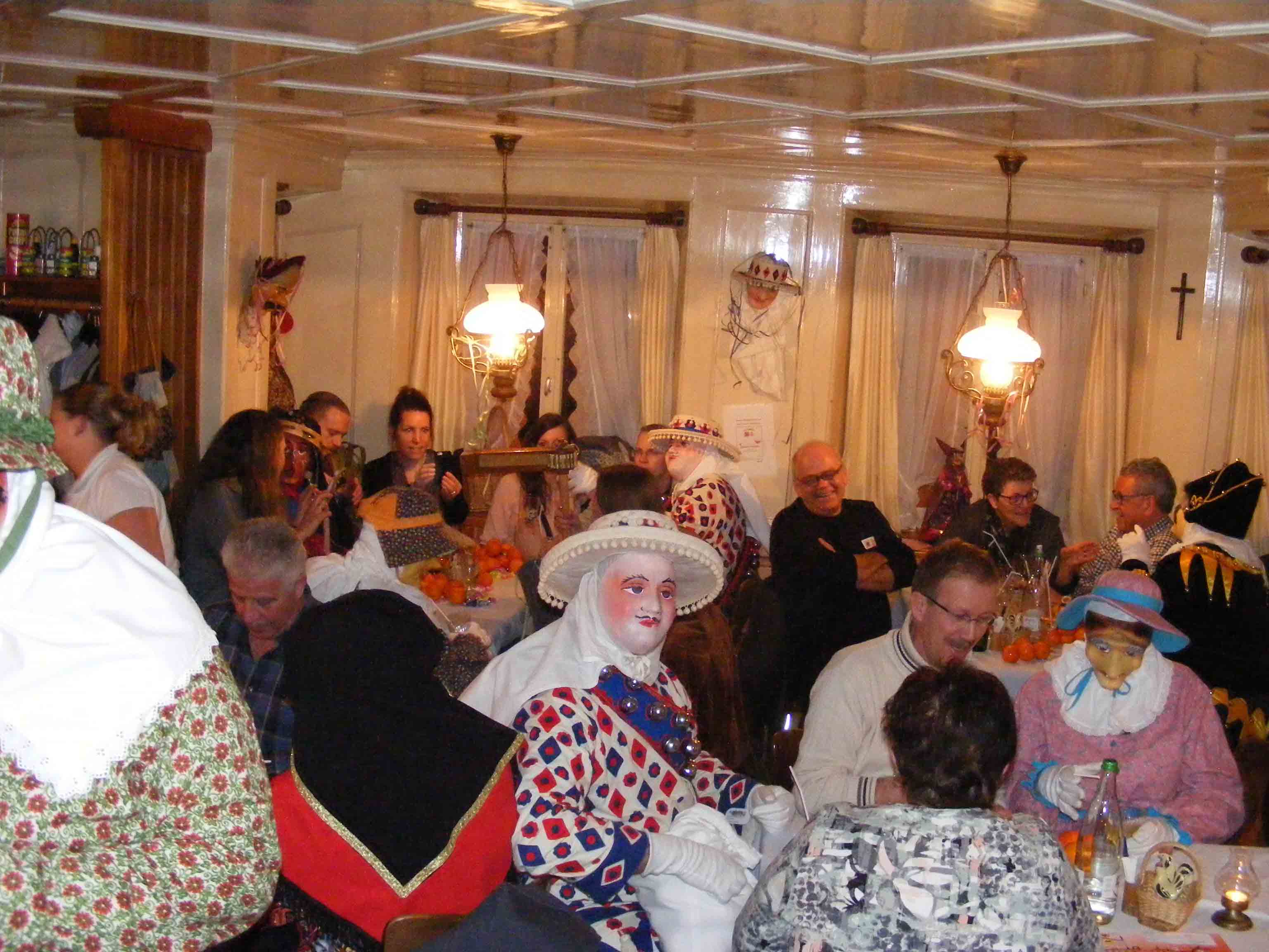Unsere Bilder vermitteln einige Impressionen vom ‚Abigrott‘-Besuch im Schankhaus ‚Zum Blauen Nil‘, wo sich die beiden Fasnachtsrotten ‘Seebner Nüssler Rott’ und ‘Schwyzer Nüssler’ die Türfalle in die Hände gaben: