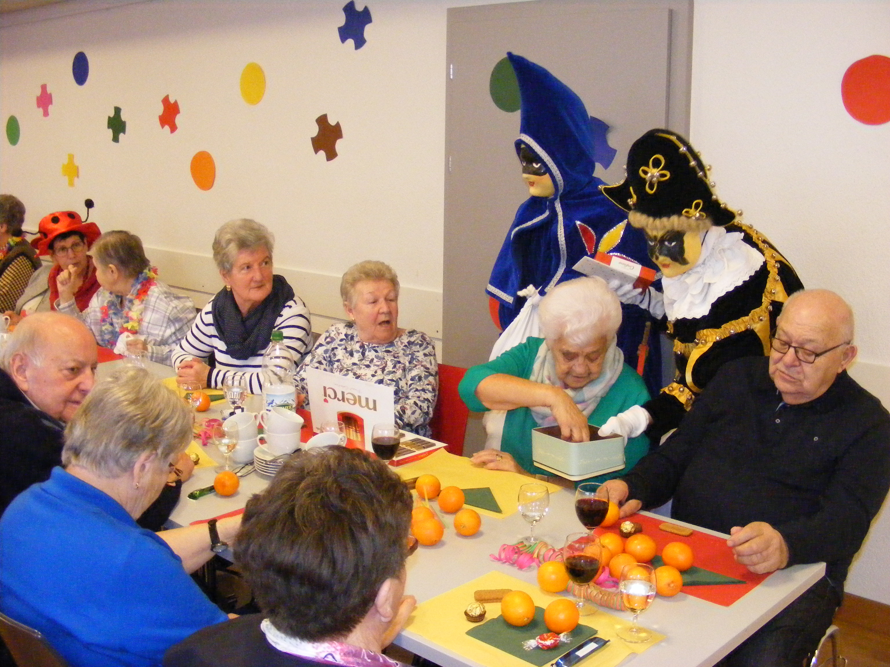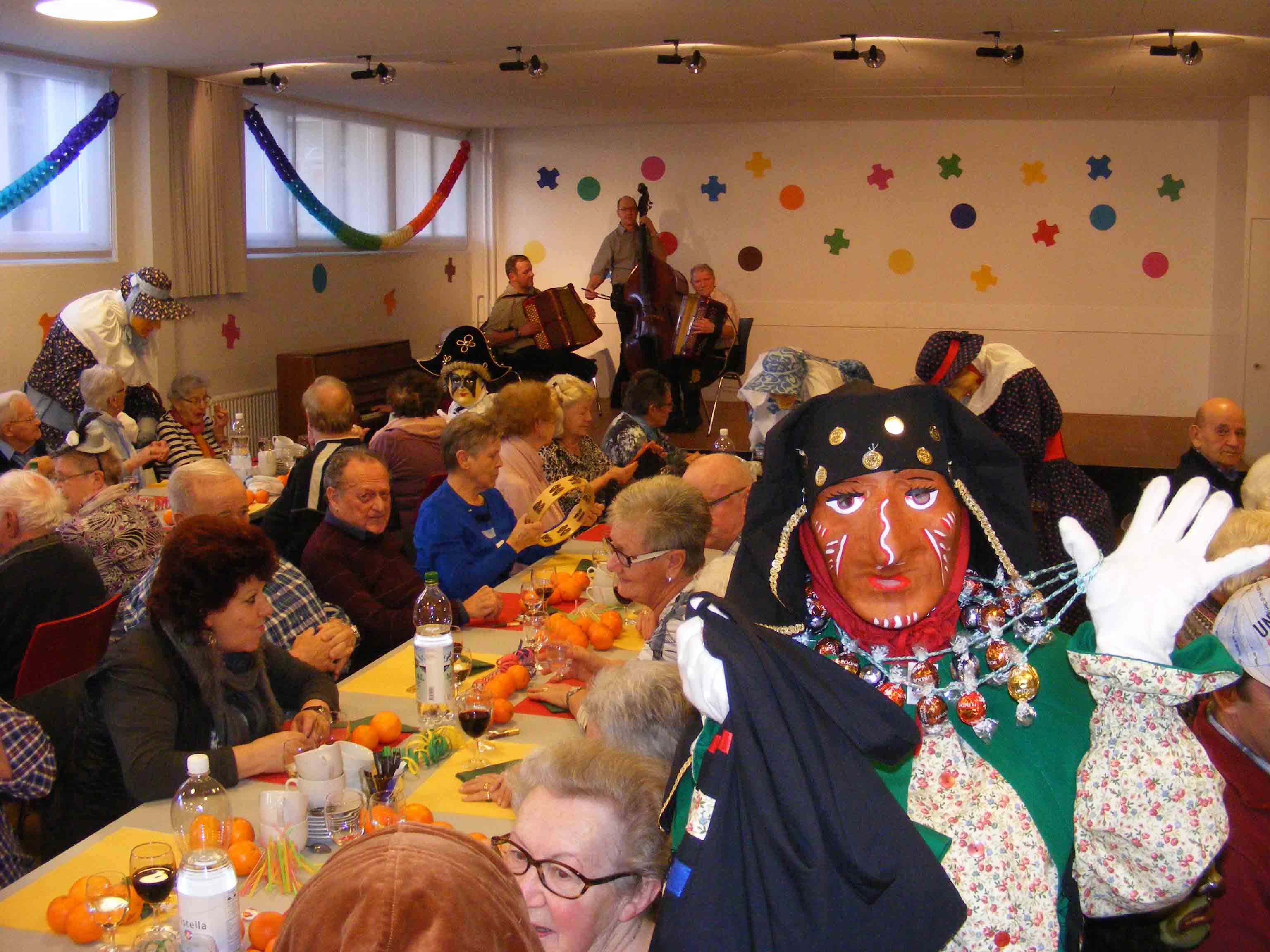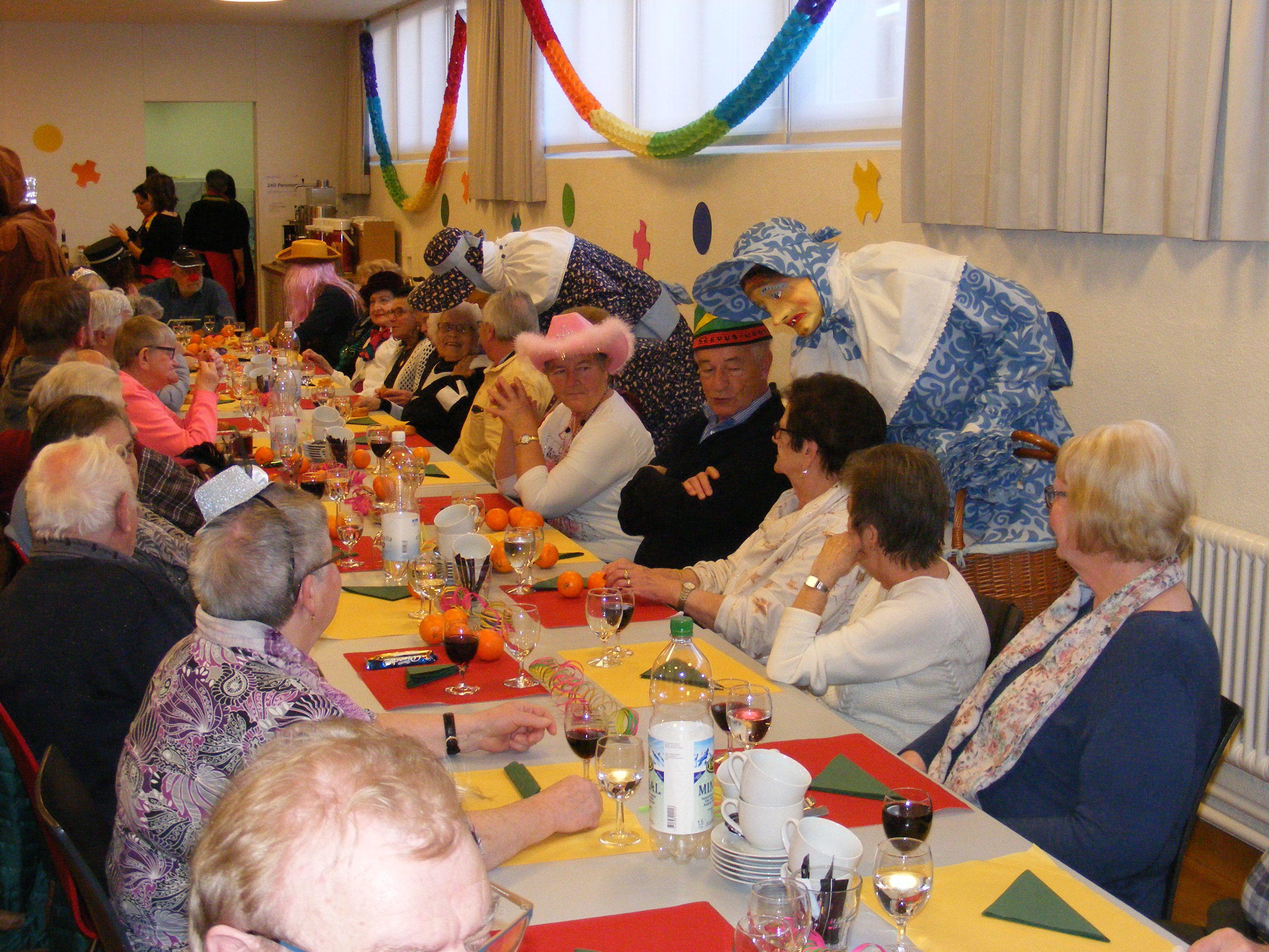 p. Bei schönsten Vorfrühlingsverhältnissen und bester Laune durfte das neguanische Volk von Addis-a-Seeba in den ‚Katakomben der Pfarrkirche’ am Montag die alljährliche Seniorenfasnacht abhalten. Organisiert von der Frauengemeinschaft Seewen und mitgeprägt von der Negusgesellschaft folgte fast eine Hundertschaft Maschgrädli (praktisch alle identisch verkleidet mit grau-melierter Kopfbedeckung, wo noch vorhanden) der Einladung zum fasnächtlichen Nachmittag. Begleitet zu den Klängen der ‚Hauskapelle Lagler/von Euw/Müller’ und bestens kulinarisch verwöhnt von vielen fleissigen Mütter-Händen erlebten die Neguanerinnen und Neguaner einige unbeschwerte Stunden. Das bunte Unterhaltungsprogramm liess keine Wünsche offen. Erst beglückte eine kaiserliche Delegation die Anwesenden und verteilte Orangen, dann mischte sich eine Rott Maschgraden unter das Publikum und bezirzte dieses und schliesslich servierte so um die Viere das Betreuungsteam einen feinen Zvieri. Sehr schnell verflog dabei die Zeit! Bei Kaffee und Fasnachts-Chüechli wurde noch bis zum Einbruch der Dunkelheit der Geselligkeit gefrönt, bis sich der Kaiser wieder in seinen Palast zurückzog. Das Volk begleitete ihn dabei, mit vielen Taschen voller Orangen und besten Erinnerungen an den fasnächtlichen Nachmittag…