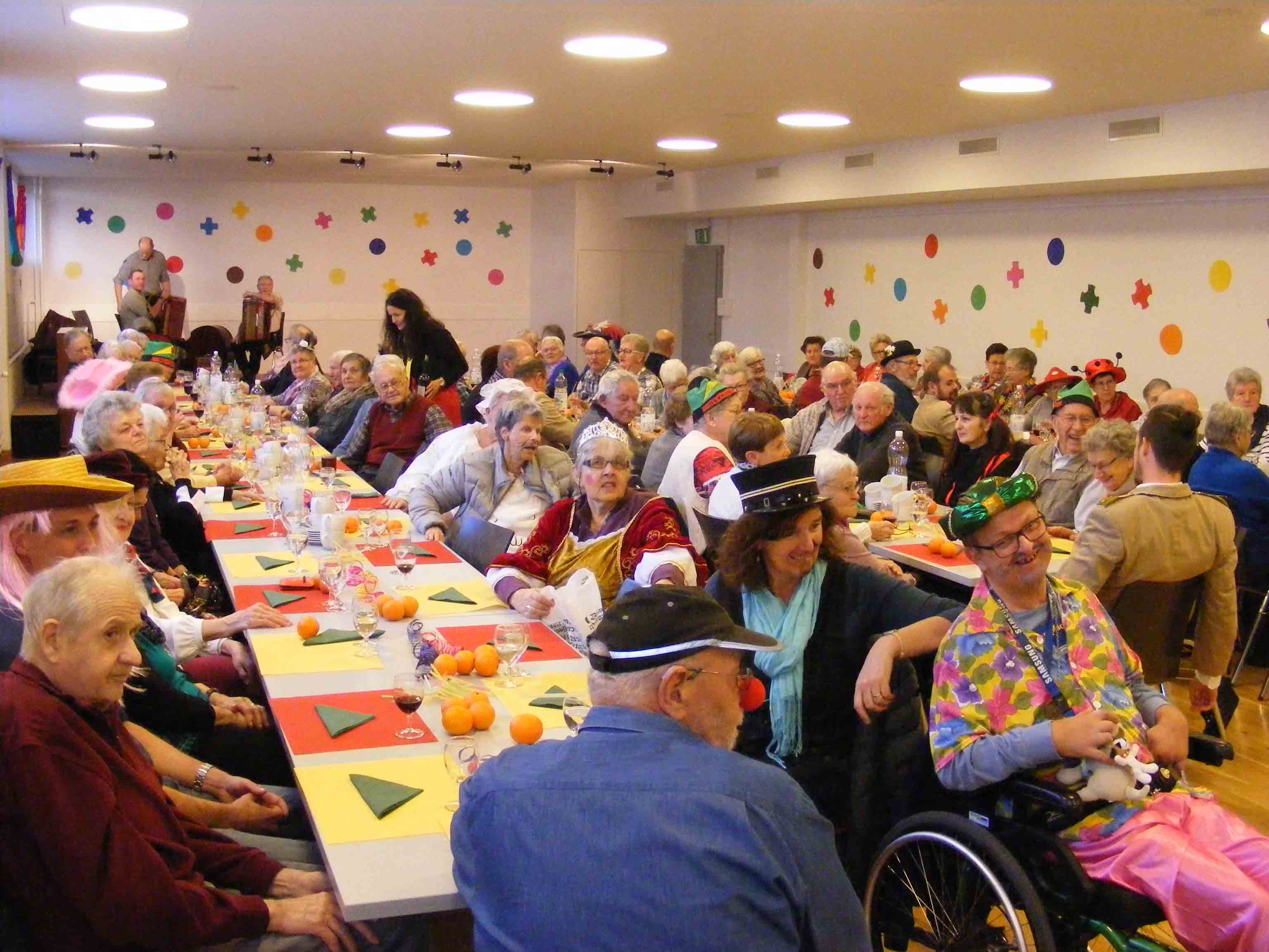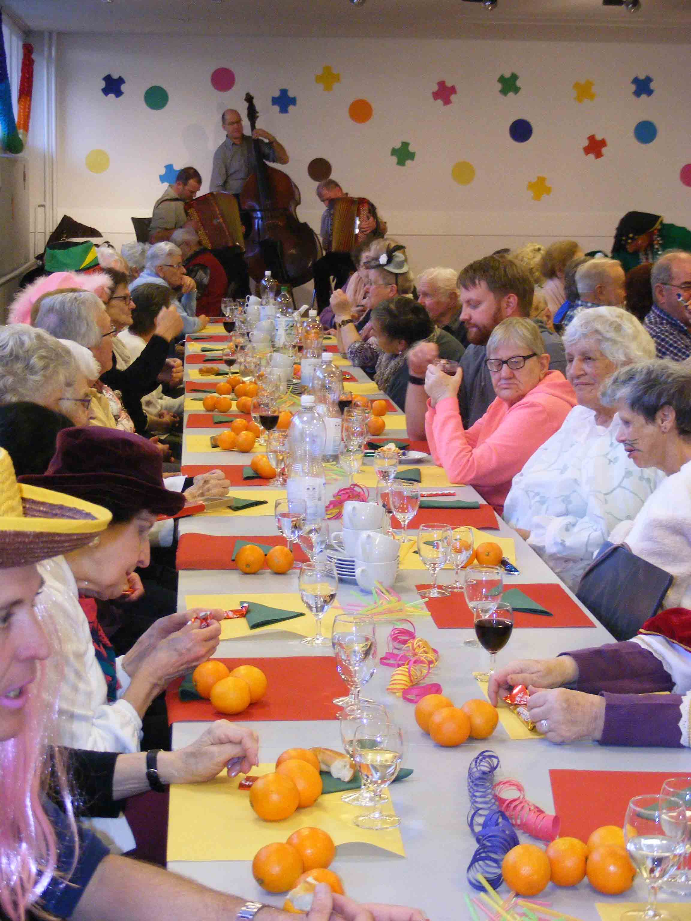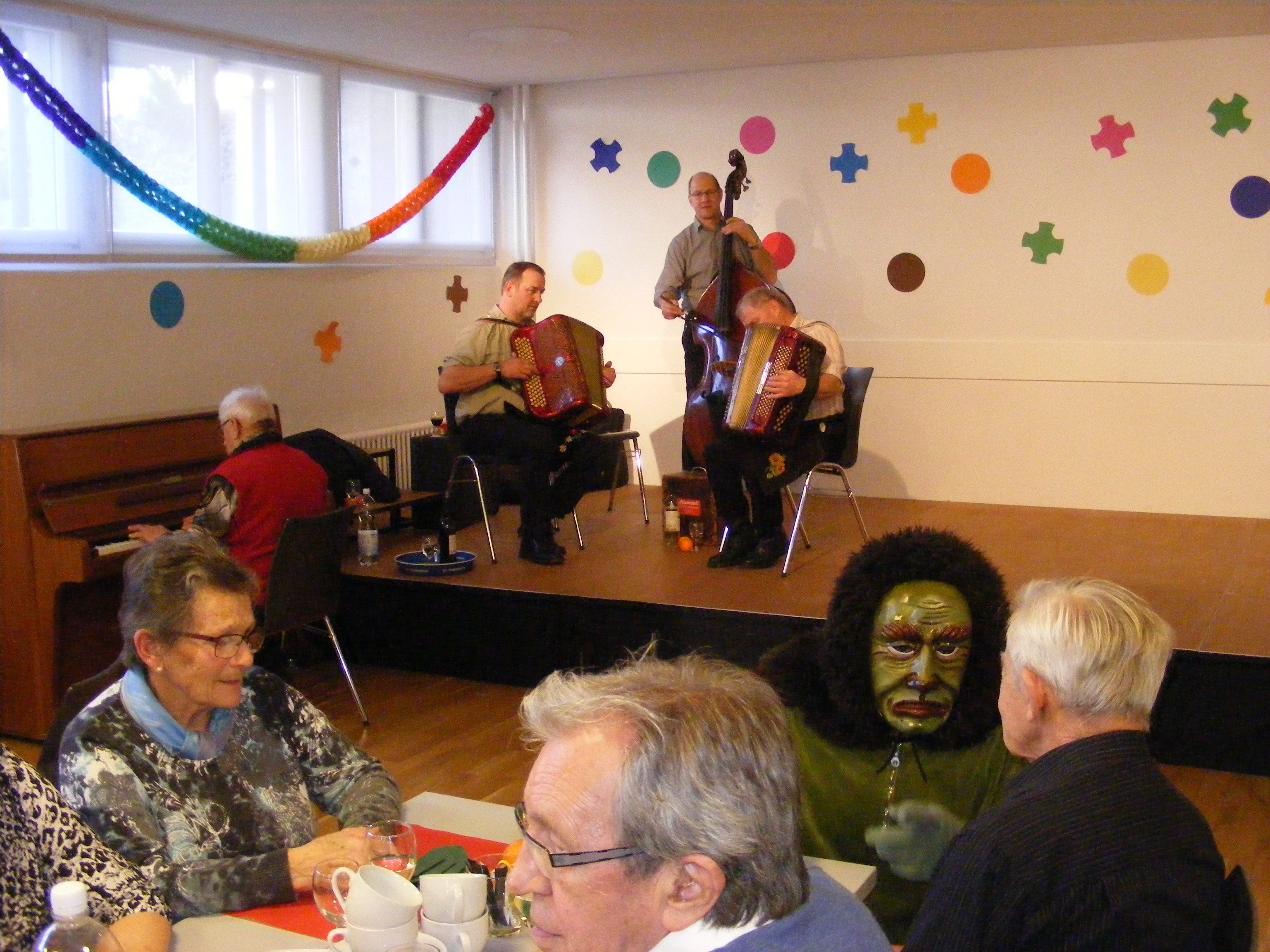 p. Bei schönsten Vorfrühlingsverhältnissen und bester Laune durfte das neguanische Volk von Addis-a-Seeba in den ‚Katakomben der Pfarrkirche’ am Montag die alljährliche Seniorenfasnacht abhalten. Organisiert von der Frauengemeinschaft Seewen und mitgeprägt von der Negusgesellschaft folgte fast eine Hundertschaft Maschgrädli (praktisch alle identisch verkleidet mit grau-melierter Kopfbedeckung, wo noch vorhanden) der Einladung zum fasnächtlichen Nachmittag. Begleitet zu den Klängen der ‚Hauskapelle Lagler/von Euw/Müller’ und bestens kulinarisch verwöhnt von vielen fleissigen Mütter-Händen erlebten die Neguanerinnen und Neguaner einige unbeschwerte Stunden. Das bunte Unterhaltungsprogramm liess keine Wünsche offen. Erst beglückte eine kaiserliche Delegation die Anwesenden und verteilte Orangen, dann mischte sich eine Rott Maschgraden unter das Publikum und bezirzte dieses und schliesslich servierte so um die Viere das Betreuungsteam einen feinen Zvieri. Sehr schnell verflog dabei die Zeit! Bei Kaffee und Fasnachts-Chüechli wurde noch bis zum Einbruch der Dunkelheit der Geselligkeit gefrönt, bis sich der Kaiser wieder in seinen Palast zurückzog. Das Volk begleitete ihn dabei, mit vielen Taschen voller Orangen und besten Erinnerungen an den fasnächtlichen Nachmittag…