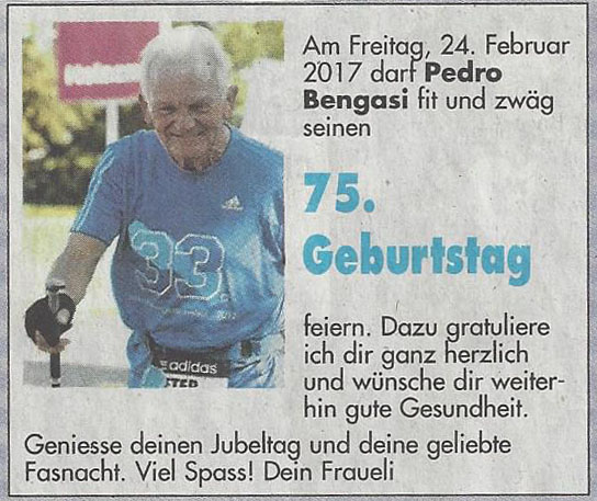 Und schliesslich festgestellt: unser ‘Alt-Kaiser’, Pedro Bengasi, feiert am 24.2.17 seinen 75. Geburri. Herzliche Gratulation!