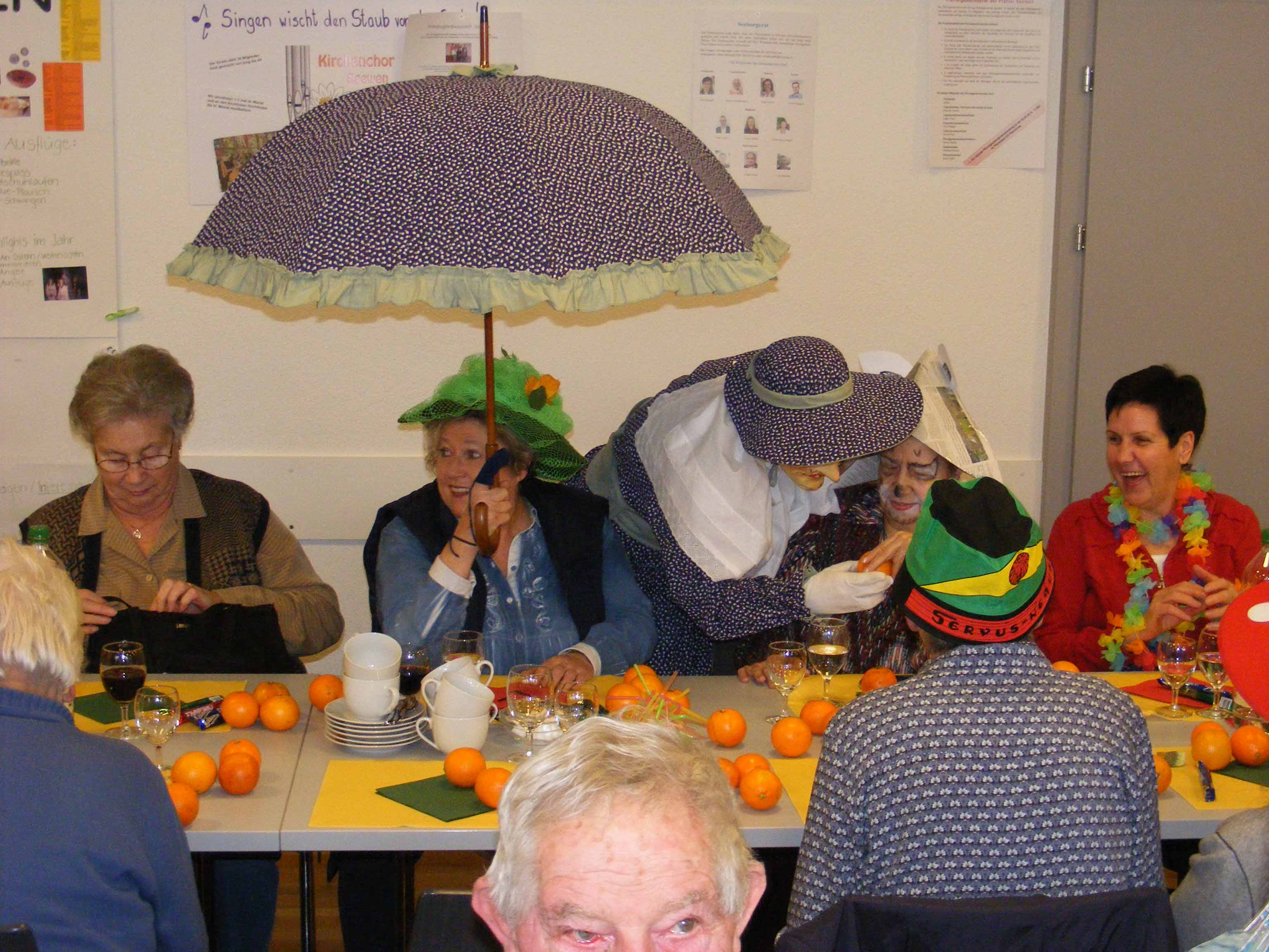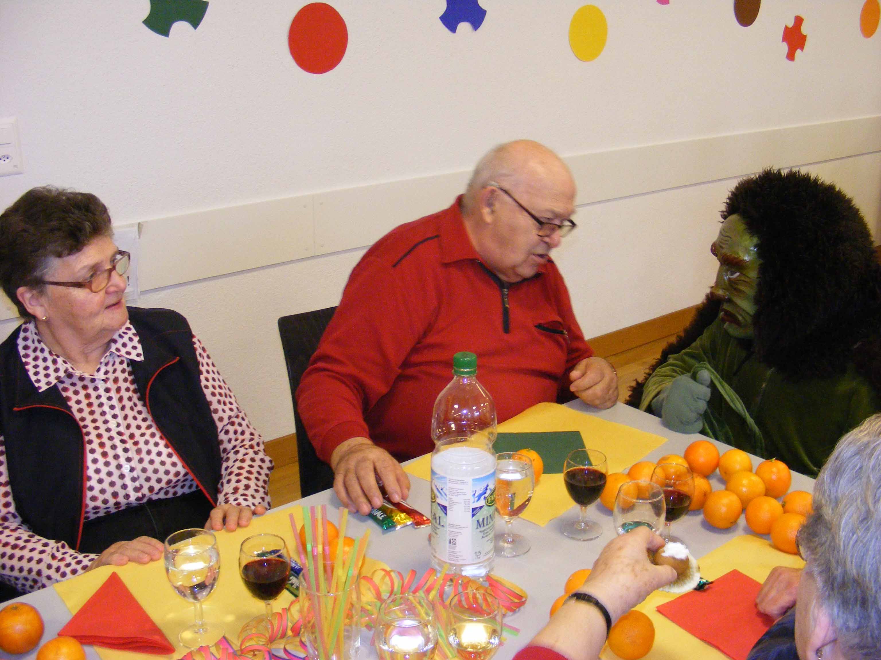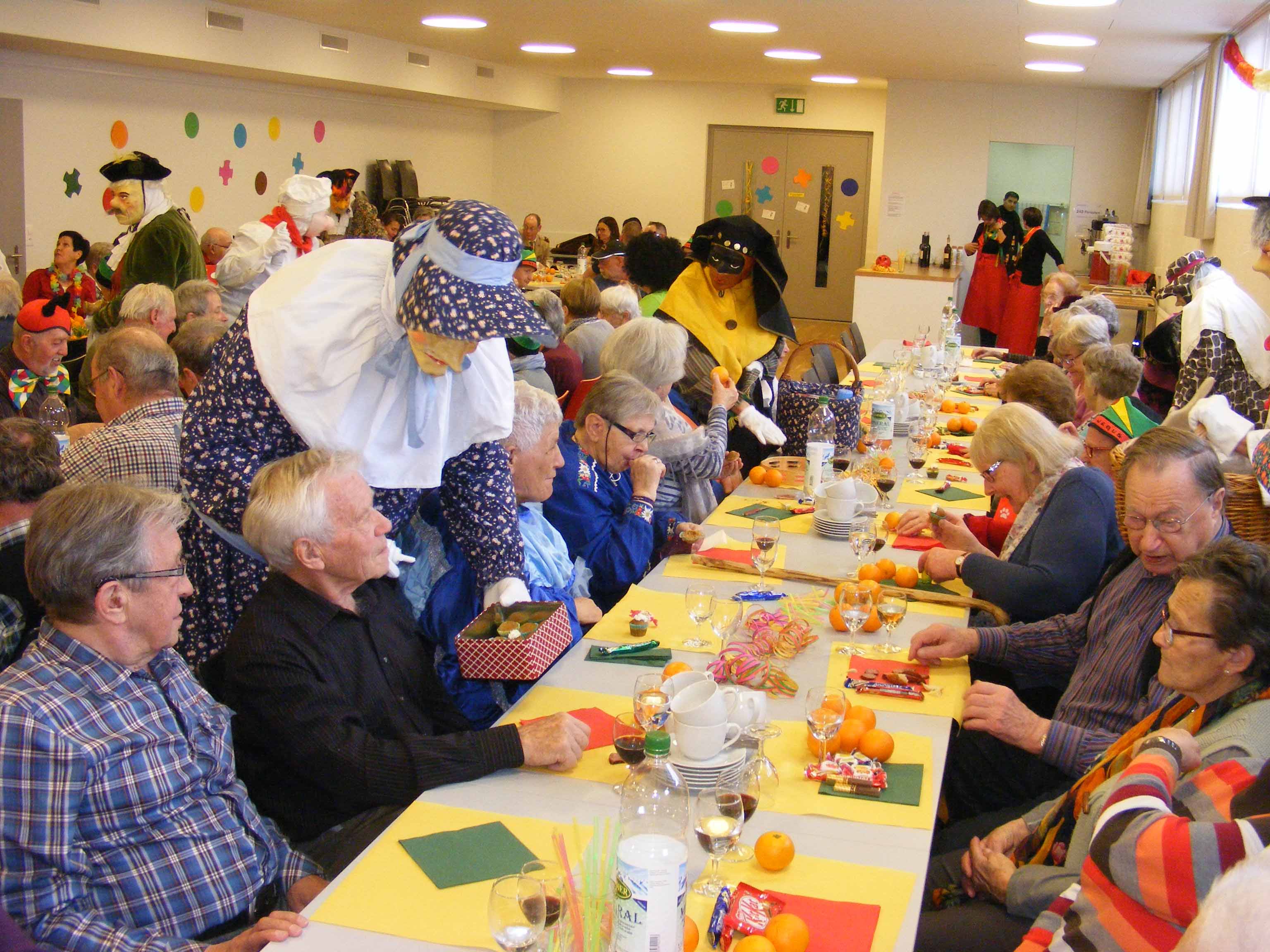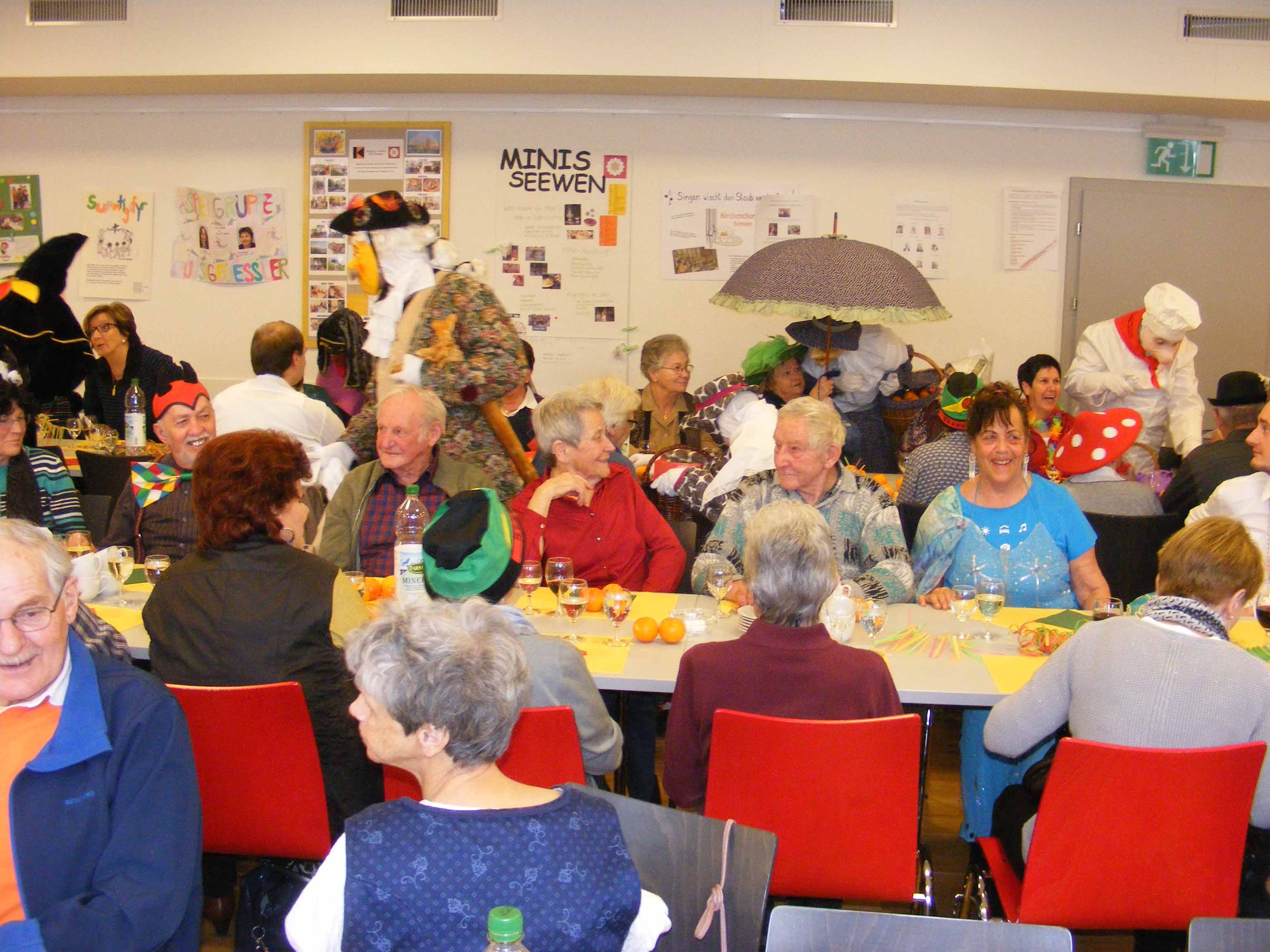 p. Bei frühlingshaften Temperaturen durfte am Montag (20. Februar) das neguanische Volk von Addis-a-Seeba in den ‚Katakomben der Pfarrkirche’ die alljährliche Seniorenfasnacht abhalten. Organisiert von der Frauengemeinschaft Seewen und mitgeprägt von der Negusgesellschaft folgten rund 70 weise – mehr oder weniger ‘verkleidete’ - Maschgrädli der Einladung zum fasnächtlichen Nachmittag. Begleitet zu den Klängen der ‚Hauskapelle Lagler/von Euw/Müller’ und bestens kulinarisch verwöhnt von vielen fleissigen Mütter-Händen erlebten die junggebliebenen Neguanerinnen und Neguaner einige unbeschwerte Stunden. Das bunte Unterhaltungsprogramm liess keine Wünsche offen. Erst beglückte eine kaiserliche Delegation die Anwesenden und verteilte Orangen, dann mischte sich eine Rott Maschgraden unter das Publikum und bezirzte dieses ebenfalls mit Orangen und Süssem und schliesslich animierten einige Fasnächtler die Anwesenden zum Tanz auf der Bühne. Auch wurde die Gelegenheit genutzt, um die zwei ältesten Anwesenden zu ehren: Elsa Steiner-Bamert (geb. 1918, also 99-jährig) und Giuseppe Broggi (geb. 1923, 94-jährig). Kurz vor vier Uhr servierte das chic gekleidete Frauenteam dann das feine Zabig. Sehr schnell verflog dabei die Zeit! Bei Kaffee und Fasnachts-Chüechli wurde noch bis zum Einbruch der Dunkelheit der Geselligkeit gefrönt, bis sich der Kaiser wieder in seinen Palast zurückzog. Das Volk begleitete ihn dabei bis zur Palastmauer, um sich dann von da weg auf den Heimweg zu machen.